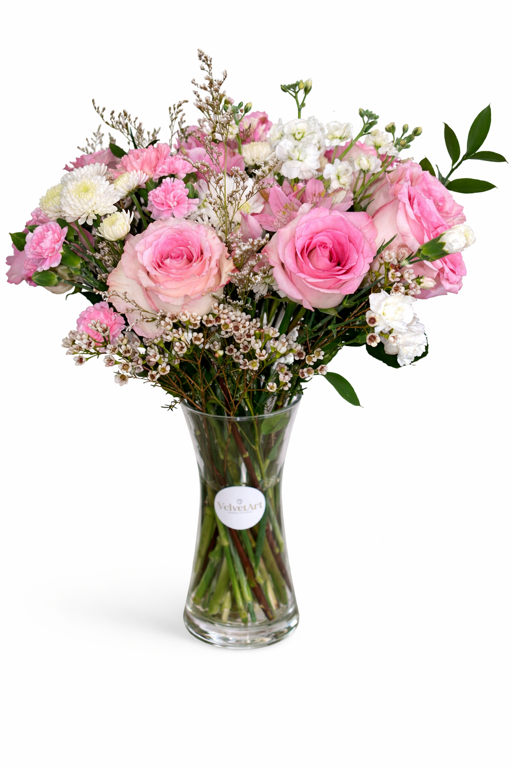 Clear Glass Vase – Classic Add-On. A timeless clear glass vase that lets the beauty of your flowers shine.Clean, elegant, and versatile — perfect for any bouquet style.Add this vase to your order for a ready-to-display arrangement with effortless sophistication.