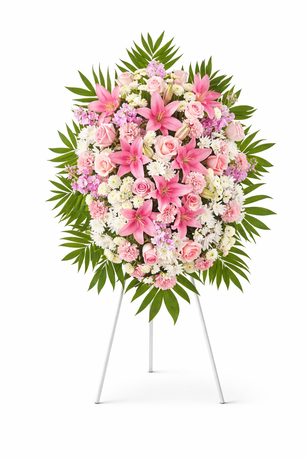 A timeless sympathy arrangement composed of soft blooms and natural greenery, thoughtfully designed to honor a beautiful life.