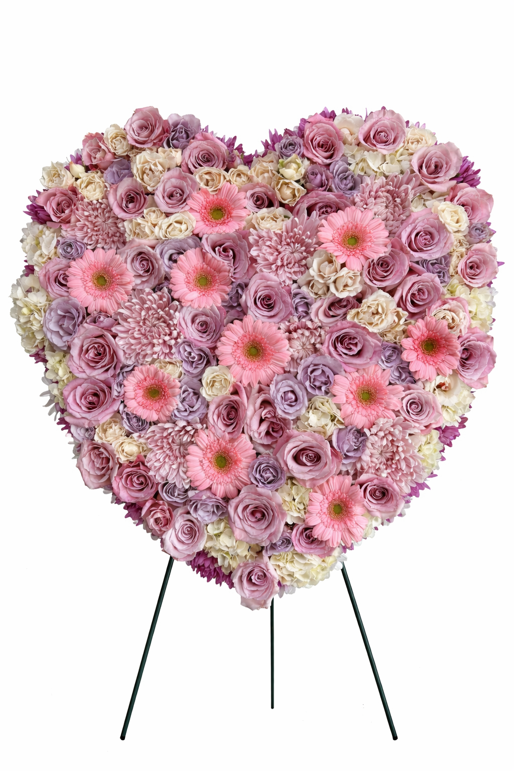 A heartfelt expression designed with soft pastel flowers arranged in a comforting heart shape. A beautiful symbol of love that lives forever.
