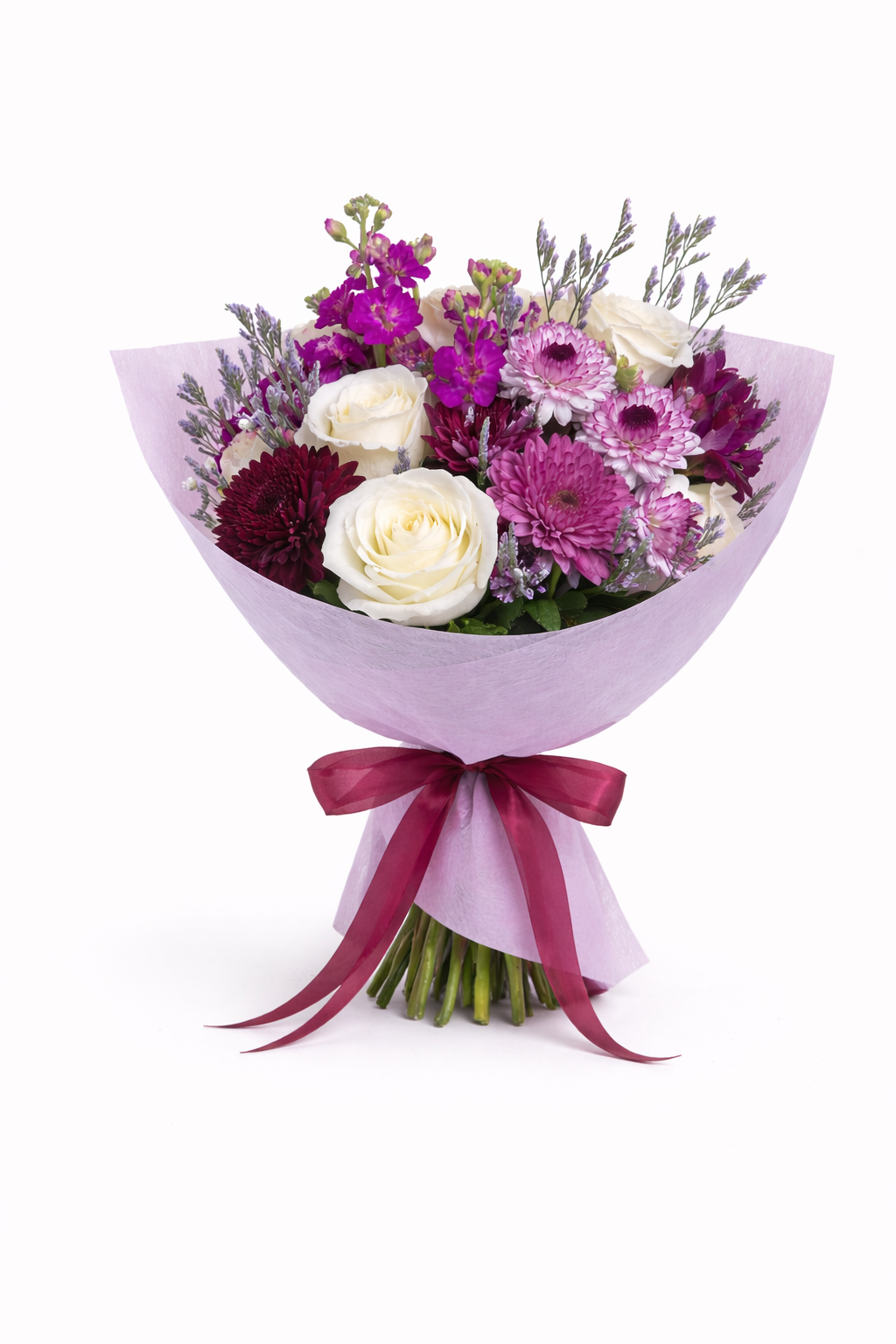 Premium: 24 stems, full luxury bouquet with eucalyptus.